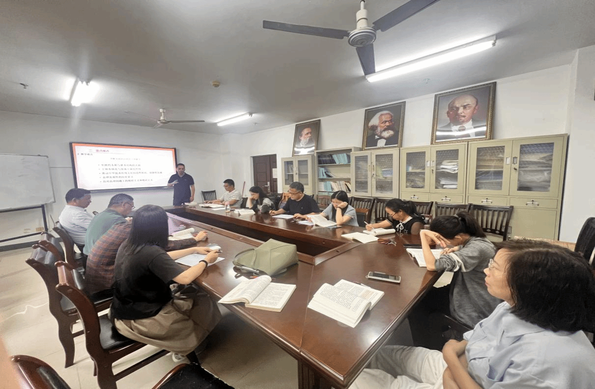 段捷频指出,各位老师要旗帜鲜明讲政治,要在学懂弄通“两个结合”上下功夫,要在思政课讲深讲透讲活上下功夫,要在教学实效性上下功夫。通过集体备课提高课件质量,在不断磨课中取长补短,不断打磨自己所讲的课程,既有统一课件的共性,也要有个人教学的个性。他强调,教研室要充分调动全体本课程任课教师的积极性,任课教师在教学中要善于发现,善于总结,主动在备课会上积极提出自己的见解,共同促进备课质量,为提高思政课教学质量作出新贡献。