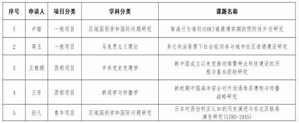 近日,全国哲学社会科学工作办公室公示了2025年国家社会科学基金年度项目立项名单。伟德国际1946喜获5项课题立项,其中一般项目2项、西部项目2项、青年项目1项,涉及马克思主义理论、中共党史党建学、区域国别学和国际问题研究、新闻学与传播学四个学科。立项课题信息如下: