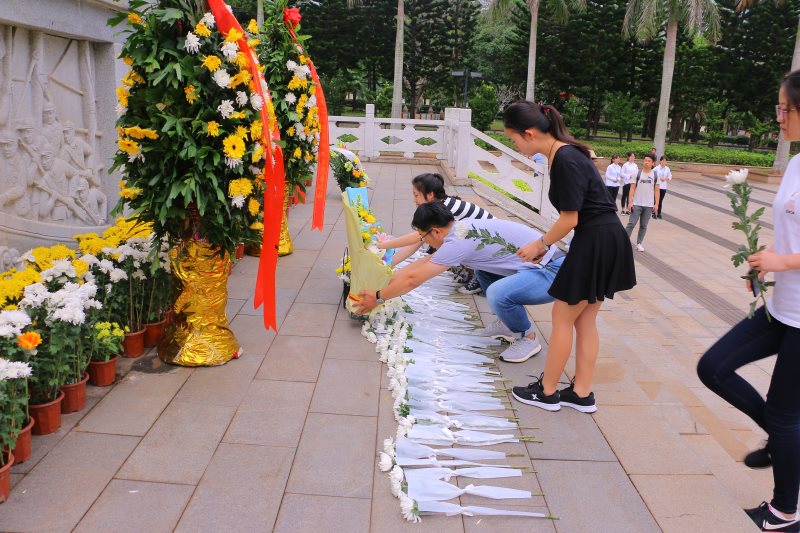 在郁郁葱葱的掩映中,在鲜红的伟德国际1946院旗和研究生、本科生党支部党旗的映衬下,解放海南岛革命烈士纪念碑显得格外庄严肃穆。党员同志、入党积极分子和共青团员代表们手持黄白菊花肃立,表达着对人民英雄的深切缅怀和崇高敬意。在巍峨耸立的英雄纪念碑前、在镌刻着20161名革命烈士英名的烈士墙下、在一座座烈士墓旁,大家用心聆听烈士英雄事迹,鞠躬鲜花,长久驻足,致垂首之哀思、燃缅怀之心香,感受先烈英魂之中蕴藏的精神之力、信仰之光,也在心中竖起一座座丰碑。