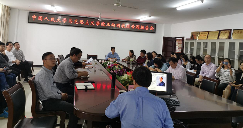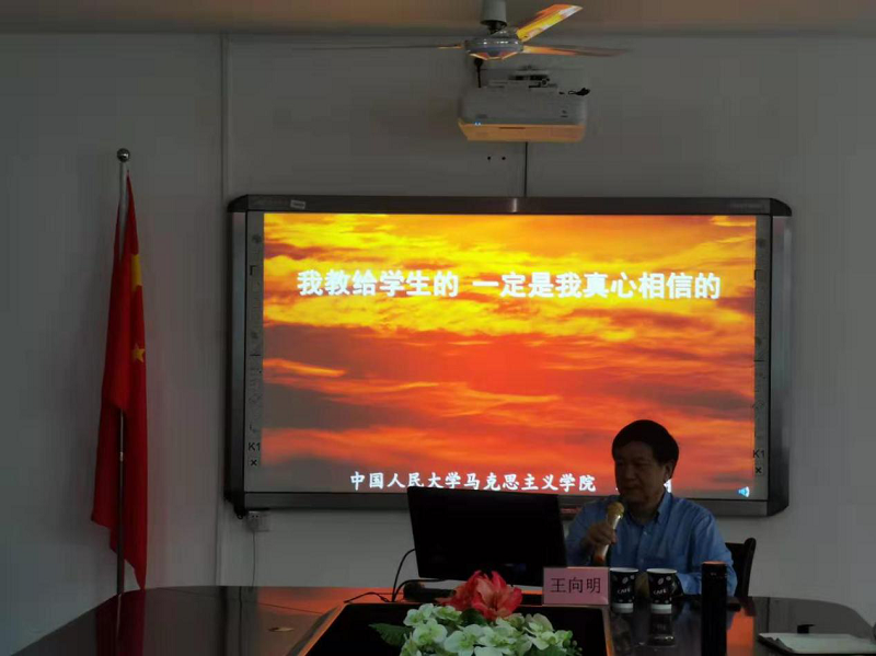 会上,王向明教授以“我教给员工的一定是我真心相信的”为主题进行专题报告会,他以若干马克思主义经典著作为例,让教师要读透马列著作,其次指出在教学中要深入分析、启发思考,要做到阐明基本观点、讲清基本事实、引导员工思考、改进教学方法。教学中还要典型示范、注重方法。最后强调在思政课教学中要以真理的力量感召人、以坚定的信仰引领人、以人格的力量感染人、以真挚的情感打动人。