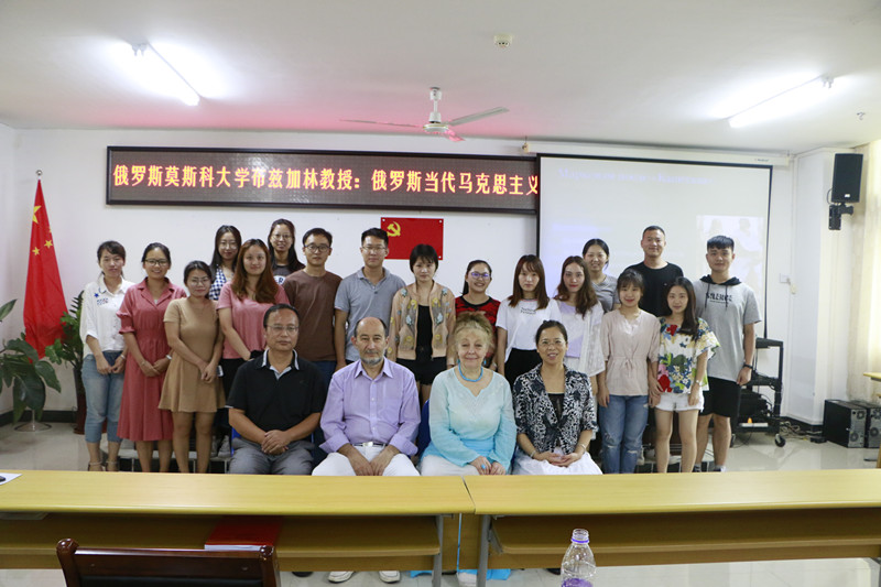 6月19日下午,莫斯科大学马克思主义研究教育中心主任、终身荣誉教授布兹加林教授和莫斯科金融法律大学布拉夫卡教授受邀来公司作题为“俄罗斯当代马克思主义”的学术讲座。讲座由海南师范大学陈红教授担任翻译,伟德国际1946副经理王善主持,公司部分师生共同参加。