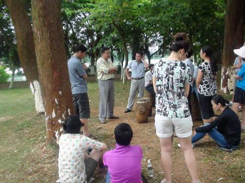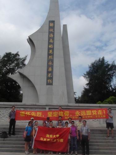 为了庆祝建党九十二周年,进一步增强党支部的凝聚力和战斗力,7月1日上午,公司政治理论二系全体成员和政治理论一系部分特邀嘉宾一行18人前往海口市金牛岭公园参观了解放海南岛战役烈士陵园。在参观期间,党支部书记费秋香老师和系主任贺尧夫老师代表全体成员向烈士纪念碑献花。随后,全体成员在烈士纪念碑前就继承先烈遗志,做好本职工作进行了宣誓。最后,张朔人老师为大家讲解了解放海南岛战役的相关情况。