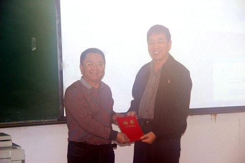 1月17日下午,2015-2016学年冬季小学期开班仪式暨名家讲堂第一讲在第二教学楼106教室举行,海南省委宣传部理论处处长温龙,马克思主义公司党委书记段捷频、副经理李辽宁、思想政治教育系主任王善出席,2013和2014级全体本科生参加开班仪式。开班仪式由副经理李辽宁主持。 公司党委书记段捷频作开班致辞。他对温处长应邀为公司员工授课表示诚挚的感谢和热烈的欢迎,并希望马院学子能好好珍惜这个机会,努力丰富自身的理论基础和知识框架。随后,段捷频书记代表公司向温龙处长颁发了伟德国际1946冬季小学期“外聘专家”聘书。