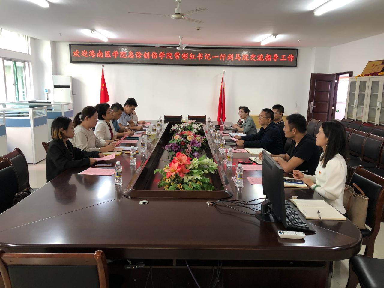 3月8日上午,海南医公司急诊创伤公司党委书记常彩红一行七人到伟德国际1946开展党建工作交流活动。公司党委书记段捷频、副经理杨娜,公司党委委员、副处级辅导员张君成和部分党支部书记参加交流会。