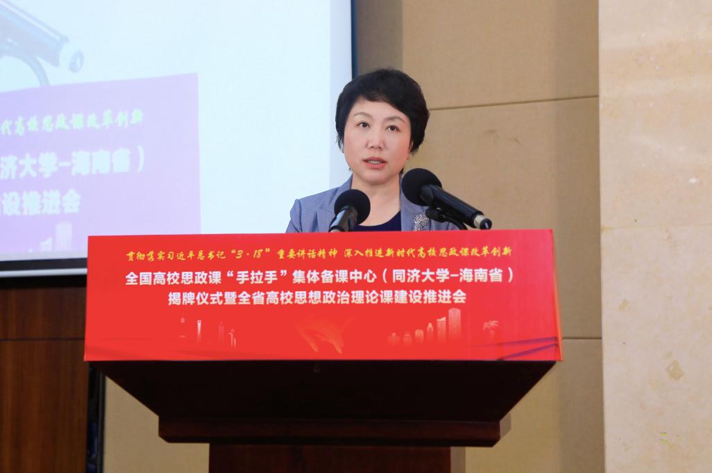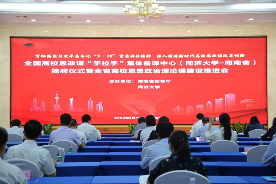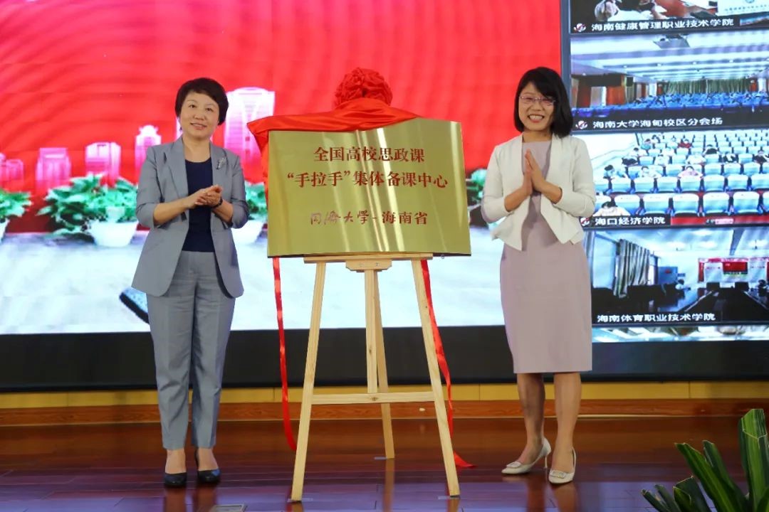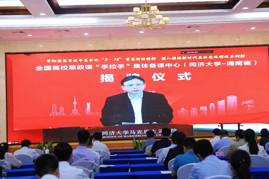 揭牌仪式上,同济大学党委书记方守恩通过视频发表讲话,他指出,同济大学将进一步深化省校合作,聚焦协同育人,充分发挥两地的资源优势,合力打造备课中心,通过开展集体备课、教学示范、交流互动等活动,在团队建设、课程改革、团队培优等方面加强合作,聚焦当前思政课建设热点难点堵点,集中研讨提问题、集中培训提素质、集中备课提质量,推动思政课建设高质量发展,支持海南国际教育创新岛建设。