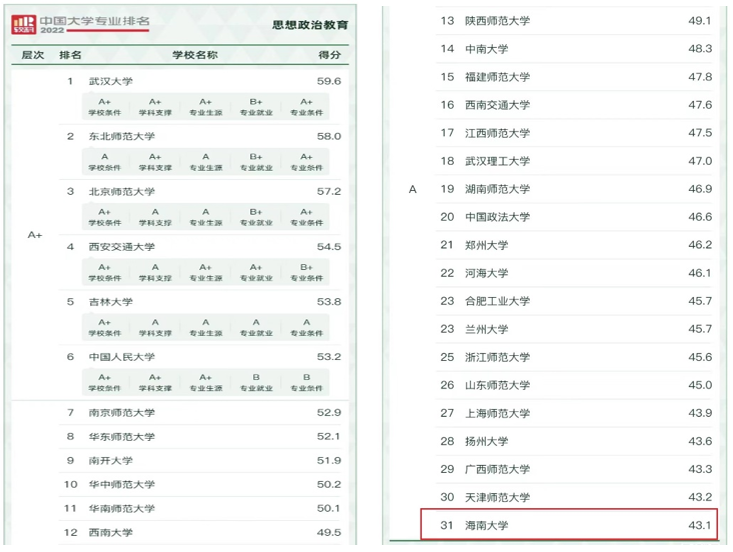 6月18日,高等教育专业评价机构软科今日正式发布2022“软科中国大学专业排名”,在 2022年中国软科中国最好专业排名中,伟德国际1946思想政治教育本科专业以31名进入全国思政本科专业类A类。