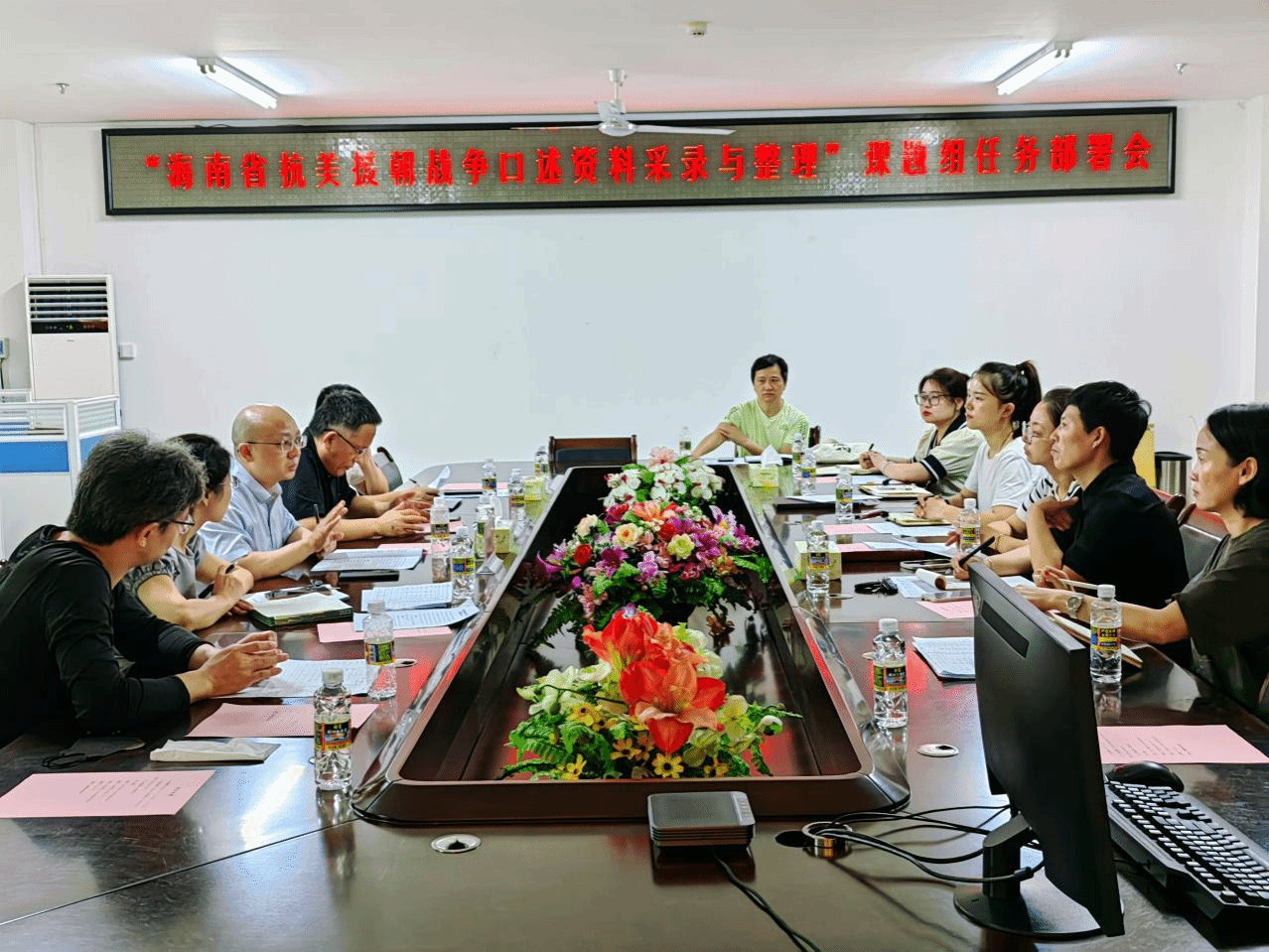 为切实做好抗美援朝口述资料采录与整理工作,高质量完成国家社科基金重大研究专项课题,真实展现我省抗美援朝老战士的战斗经历、人生感悟和精神风貌,生动诠释伟大抗美援朝精神的时代价值,充分发挥抗美援朝战争口述资料库的育人功能,大力营造崇尚英雄、学习英雄、关爱英雄的浓厚氛围。9月7日上午,“海南省抗美援朝战争口述资料采录与整理”课题组任务部署会在公司召开。