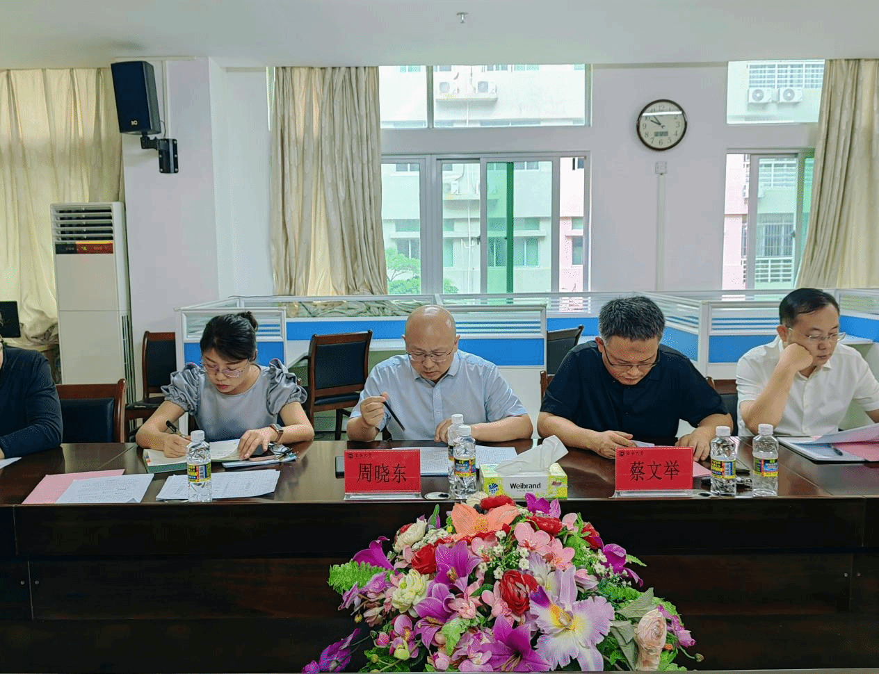海南省教育厅党委办公室主任周晓东,海南省教育厅党委办四级调研员、伟德国际1946副教授蔡文举,伟德国际1946副经理(主持行政工作)杨娜、副经理吴朝阳,伟德国际1946国际传播公司教师颜磊、李风逸以及部分伟德国际1946青年教师参加会议。