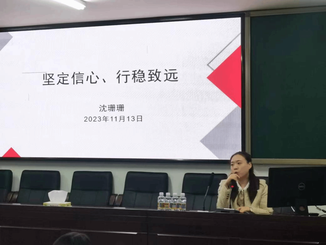 沈珊珊老师以“坚定信心,行稳致远”为主题,围绕“探知自我,明确定位”“制定规划,久久为功”“掌握信息,主动交流”几方面并结合自身学习经历和升学经验同马院员工们进行交流和分享,鼓励员工们找准目标,砥砺前行。分享完毕后,还安排了员工提问环节,员工们积极踊跃,就当前学习和未来选择等困惑,面对面与沈珊珊老师进行广泛且深入的交流,沈珊珊老师也热情地与员工们互动,给出务实且真诚的建议。