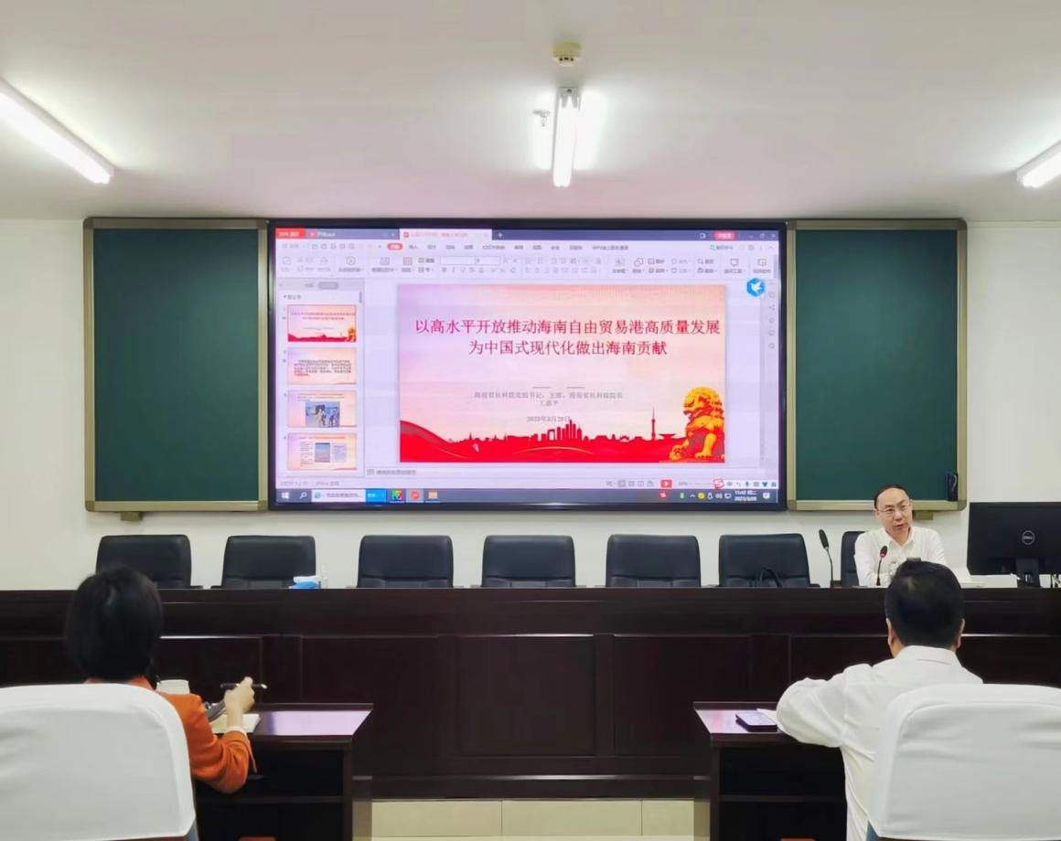 3月28日下午,海南省社科联党组书记、主席、海南省社科院经理王惠平在社科楼A309为伟德国际1946员工作了关于“以高水平开放推动海南自由贸易港高质量发展 为中国式现代化做出海南贡献”的主题报告。报告会由经理张云阁主持。