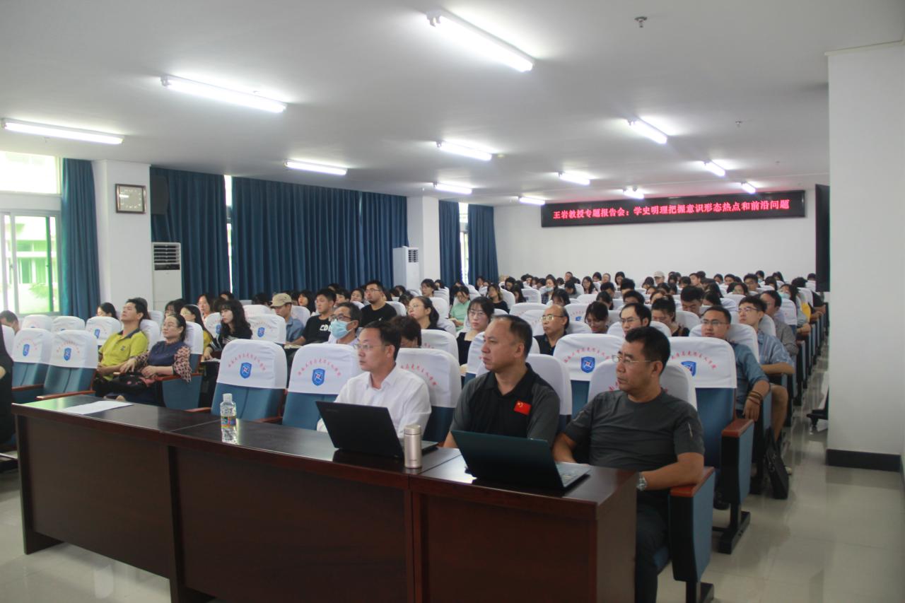 10月29日,南京航空大学伟德国际1946王岩教授到伟德国际1946指导交流,在社科楼A309为公司师生作题为“学史明理 把握意识形态热点和前沿问题” 的专题报告。院领导班子全体成员、没课的教师和全体研究生参加报告会。报告会由经理张云阁主持。